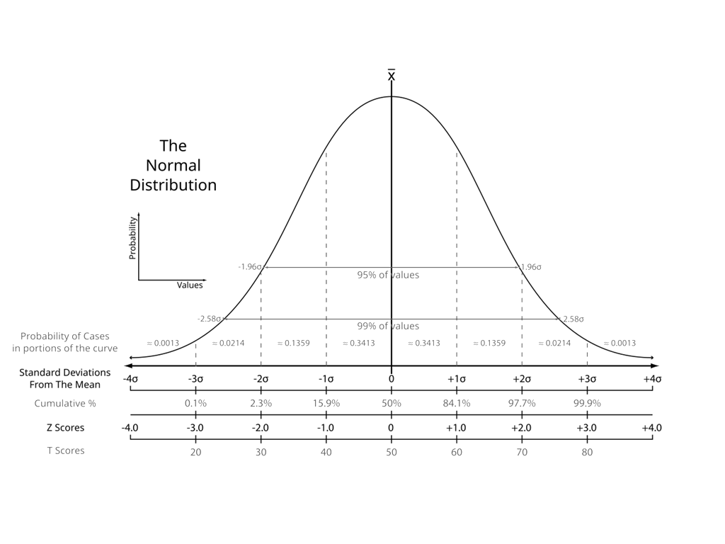 z‑score đặc biệt hữu ích khi dữ liệu ban đầu tuân theo phân phối chuẩn, bởi khi đó các z‑score cũng sẽ tuân theo phân phối chuẩn hóa với trung bình bằng 0 và độ lệch chuẩn bằng 1, cho phép bạn sử dụng các bảng z hoặc mô hình xác suất để tính phần trăm, xác suất hoặc mức độ bất thường của một quan sát.