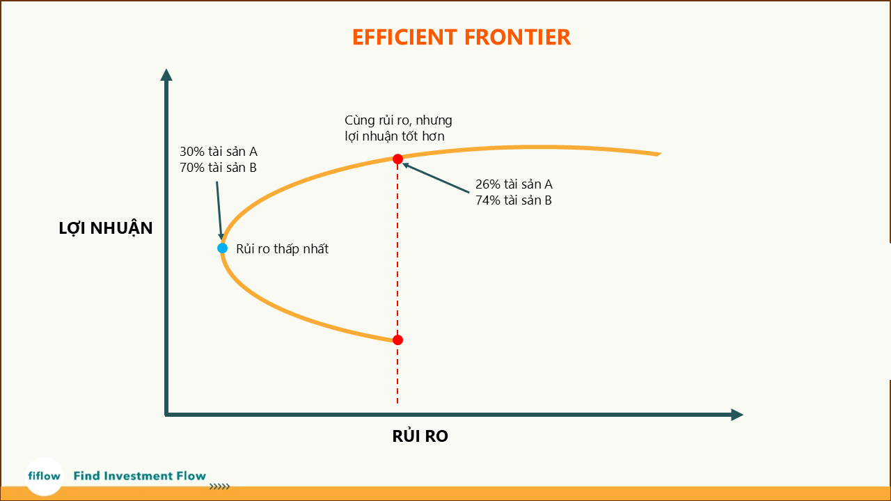 Ứng với từng tỷ trọng của tài sản trong danh mục, chúng ta có từng rủi ro (được tính bởi công thức ở trên) và lợi nhuận kỳ vọng (được tính bằng lợi nhuận kỳ vọng của từng tài sản nhân với tỷ trọng) tương ứng. Nhà đầu tư sẽ lựa chọn danh mục nằm trên đường biên hiệu quả (efficient frontier), một tập hợp các danh mục đầu tư tối ưu mang lại lợi suất cao nhất với mức rủi ro nhất định.